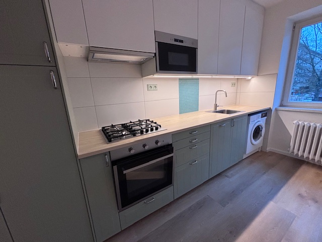 Pro soukromého investora jsme prováděli kompletní rekonstrukci bytu, který se nachází v památkově chráněné oblasti "staré Poruby". Budova byla postavena v 50tých letech v dobovém architektonickém stylu SORELA. Tato skutečnost kladla zvýšené nároky na stavební a technologické postupy při vlastní rekonstrukci. Byly vyměněny veškeré nefunkční a zastaralé zařizovací předměty, včetně zdravotechnických instalací, dlažeb, obkladů, podlah, byla provedena oprava elektroinstalace, výmalba. Za zmínku stojí kompletní výměna kuchyňské linky a renovace původní dřevěné parketové podlahy. Celková půdorysná plocha bytu činila cca 65 m2.
